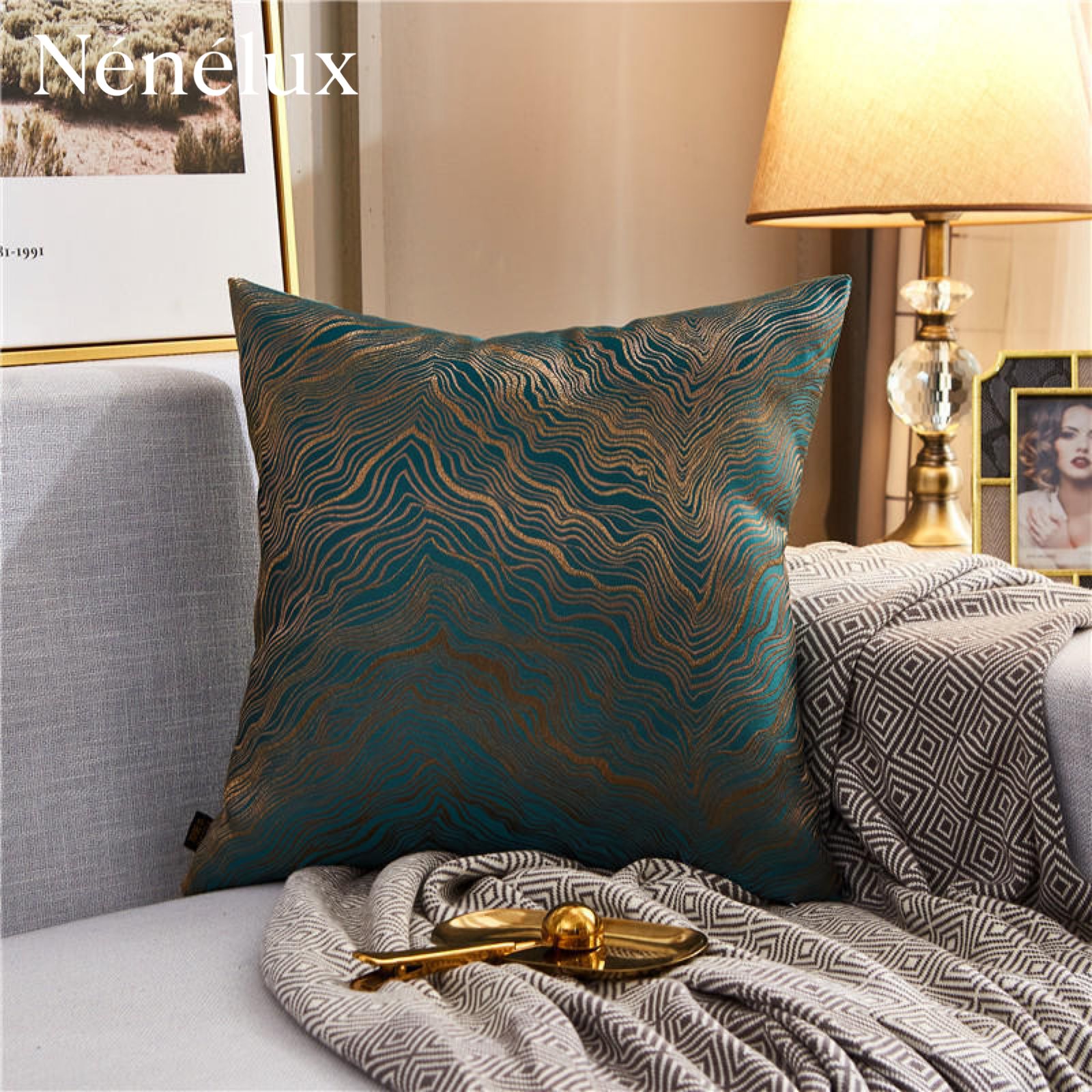 Elegant and earthy, the Emerald Drift Cushion Covers combine a dark green base with fine gold wave accents, creating a rich and sophisticated design that works beautifully in luxury interiors.